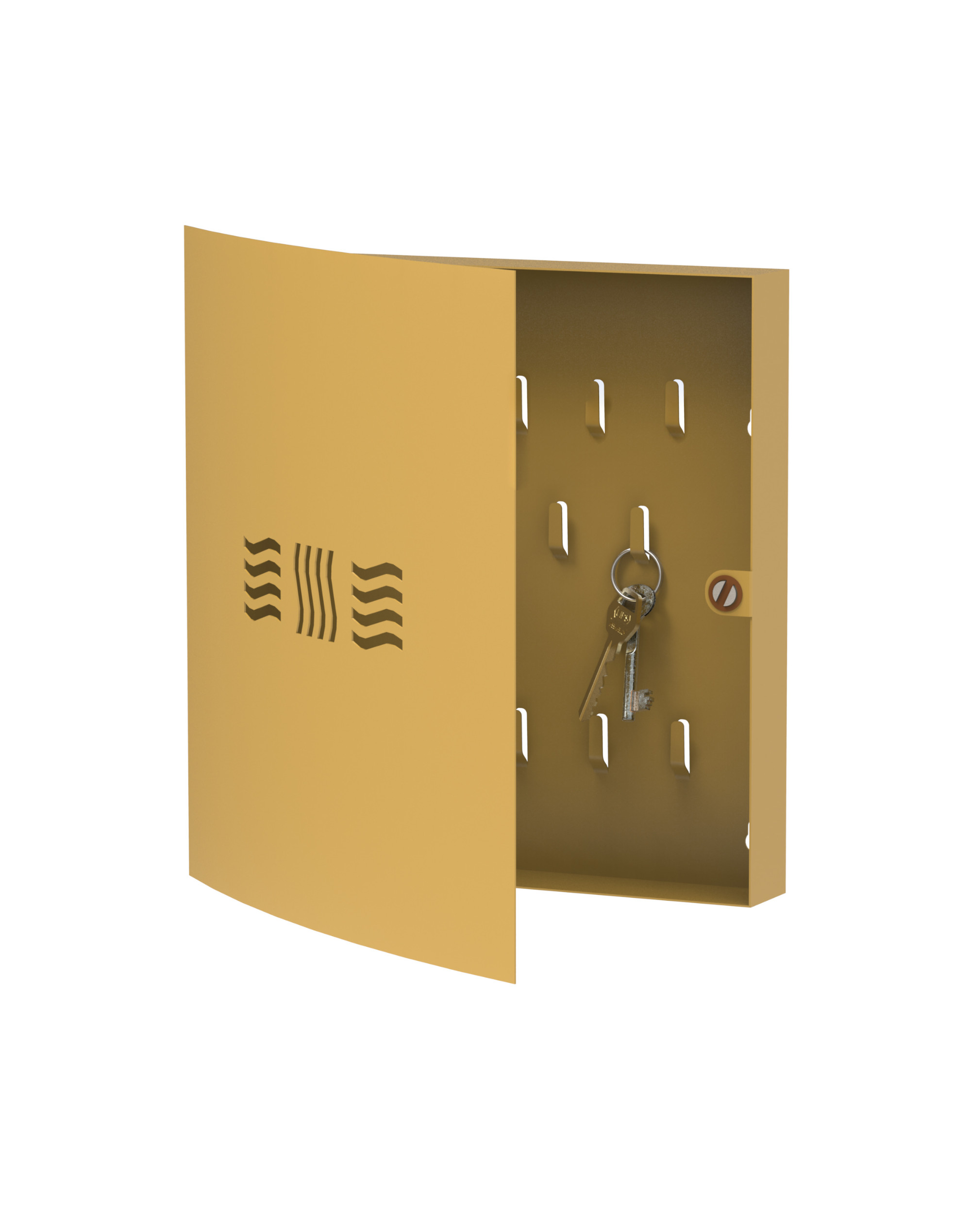 Nasze szafki na klucze wykonujemy z metalu, który wykańczamy wysokiej jakości lakierami proszkowymi wysokiej jakości lub laminatem imitującym drewno. Subtelny wycięty wzór na drzwiczkach dodaje skrzyneczkom elegancji. Bez problemu dobierzesz więc szafkę najlepiej pasującą do wystroju przedpokoju. We wnętrzu znajduje się od kilku do kilkunastu haczyków na klucze – w zależności od modelu – by każdy domownik mógł w niej bezpiecznie przechowywać swoje klucze, bez konieczności szukania ich w gąszczu innych drobiazgów przechowywanych w szufladach, szafkach czy pudełkach.