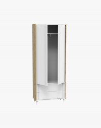 Szafa posiada półkę, wysuwany drążek na wieszaki oraz dwie duże szuflady.