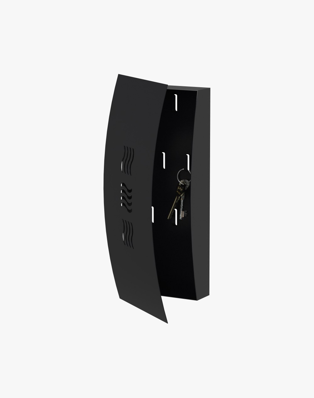 Szafka na klucze posiada delikatnie profilowane drzwiczki z wyciętym niewielkim wzorem. Zamykana jest na magnesik, by drzwiczki skutecznie ukrywały zestawy kluczy przed wzrokiem gości i dawały wrażenie estetycznego porządku. Skrzynka na klucze wykończona została wysokiej jakości lakierem proszkowym - powłoką, która jest bardziej odporniejsza na zarysowania niż zwykły lakier. Możesz wybrać szafkę na klucze w kolorze, który najlepiej wkomponuje się w wystrój Twojego przedpokoju. A jest w czym wybierać, bo nasze wiszące skrzynki na klucze dostępne są w kolorze białym, czarnym, grafitowym, szarym, niebieskim, złotym i różowym. Który z nich najbardziej przypadnie Ci do gustu?