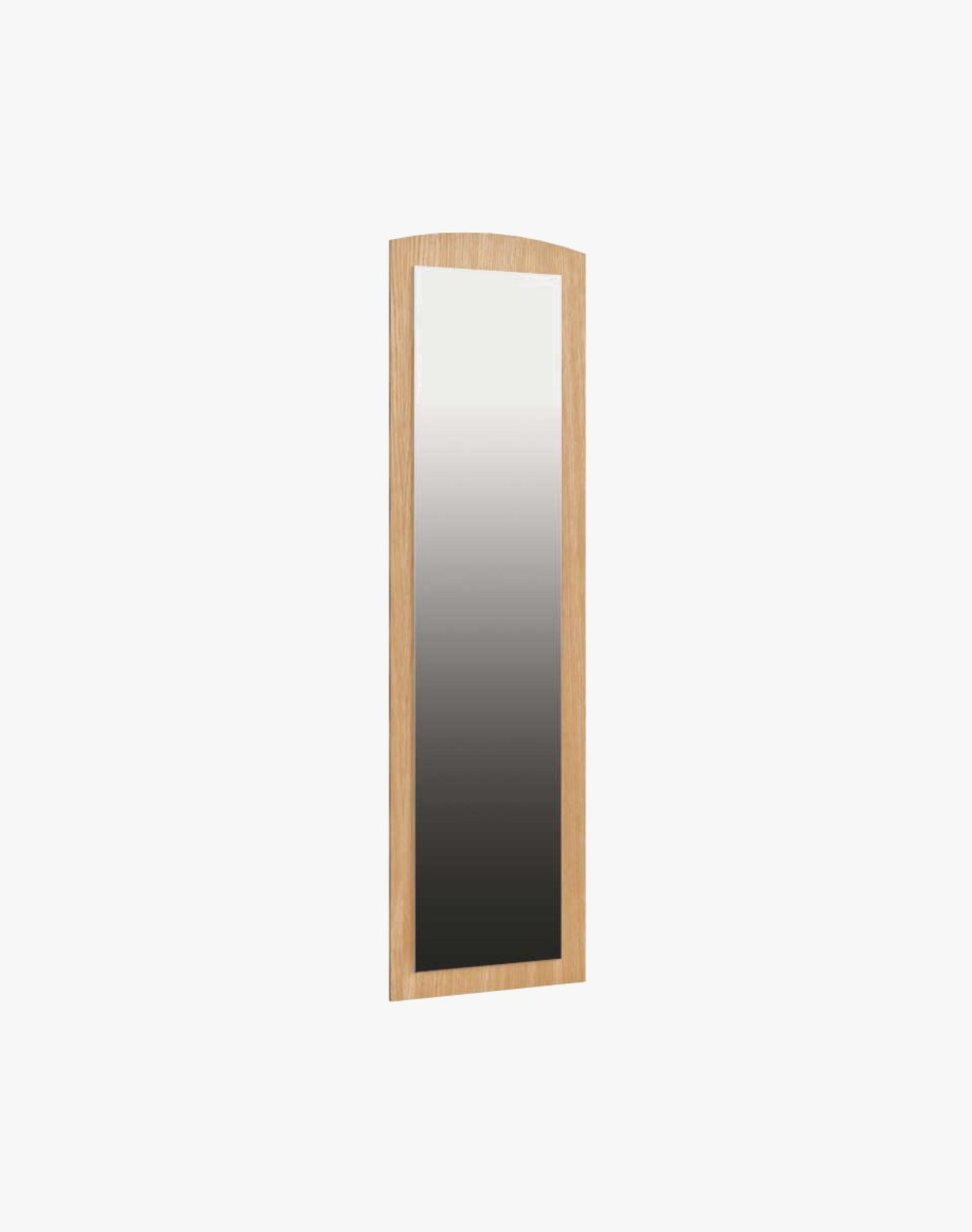Panel, na którym lustro zostało osadzone, wykonaliśmy z formowanej sklejki. Jest to materiał stosunkowo lekki i jednocześnie solidny, dzięki czemu lustro służyć Ci będzie przez wiele lat. Możesz wybrać lustro na białym panelu z wyeksponowanymi krawędziami z drewna lub na panelu w kolorze naturalnego dębu.
